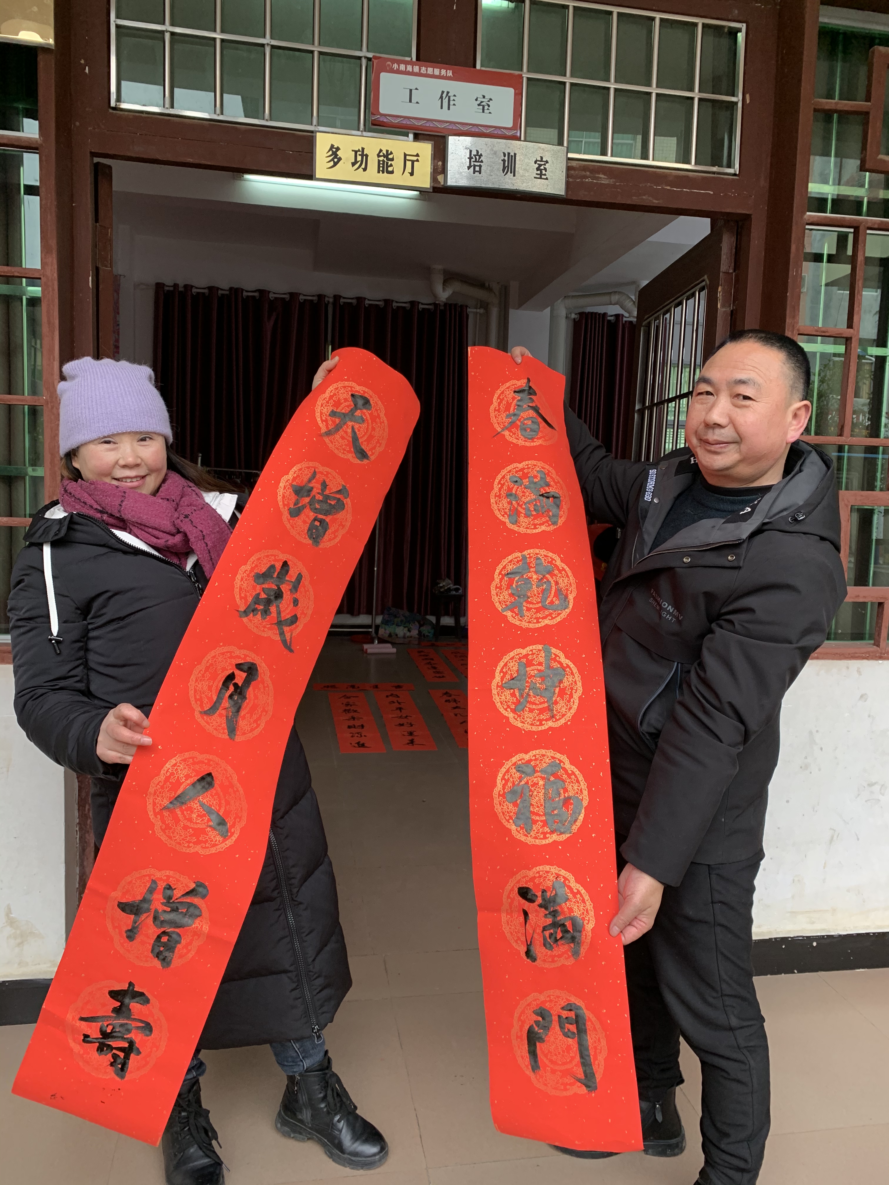 為營造歡樂祥和的節日氛圍,助力鄉村文化建設,推動文化惠民政策深入基層,把濃濃的年味兒和新春的祝福送到老百姓家門口,在春節即將來臨之際,1月25日,黔江區圖書館特邀黔江區書法家協會的老師,帶著美好的祝福與愿景,驅車來到了小南海鎮文化活動中心,為當地群眾現場免費書寫春聯,把一份份“文化年貨”送到鄉民手中。