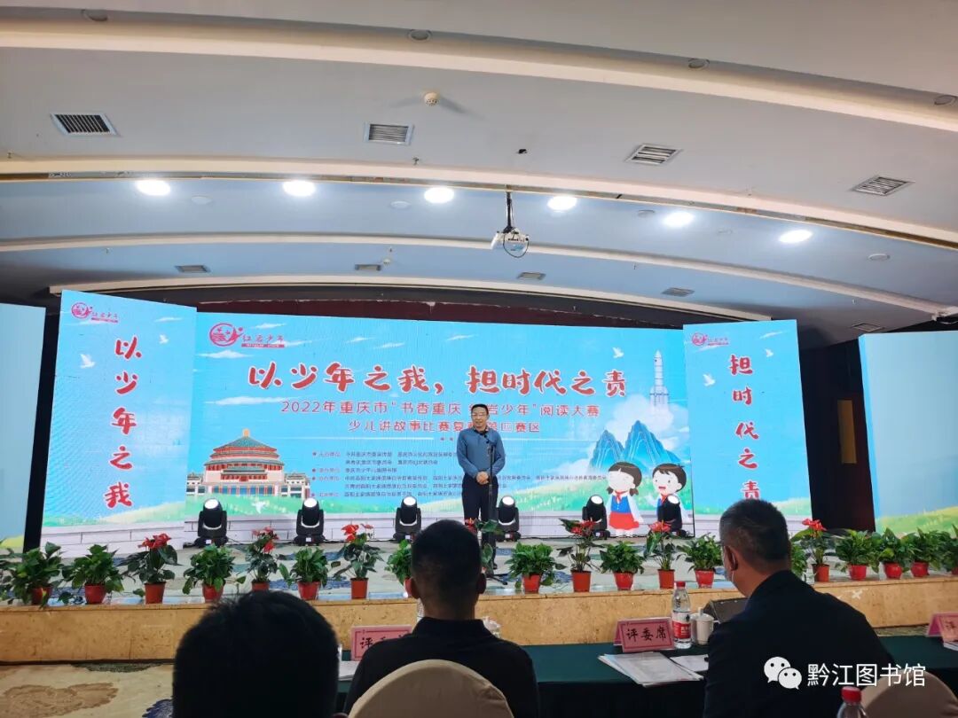 5月29日,“以少年之我,擔時代之責”——2022年重慶市“書香重慶 紅巖少年”閱讀大賽少兒講故事比賽復賽第四賽區比賽在酉陽縣時代國際大酒店開賽。 來自于黔江、涪陵、南川、秀山等10區縣公共圖書館30名選手角逐第四賽區復賽。黔江區圖書館選送的趙丹藝《愛的擁抱》、許一諾《幺公的稻香夢》分獲大賽二、三等獎。本次比賽由中共重慶市委宣傳部、市文化和旅游發展委員會、市教育委員會、共青團重慶市委員會、市婦女聯合會主辦,市少年兒童圖書館承辦,酉陽縣委宣傳部、縣文化和旅游發展委員會、縣教委、共青團縣委、縣婦聯協辦,縣圖書館實施,旨在增強青少年的民族自信心和自豪感,引領他們堅定理想信念,陶冶道德情操,讓少年兒童愛國主義情懷代代相傳。