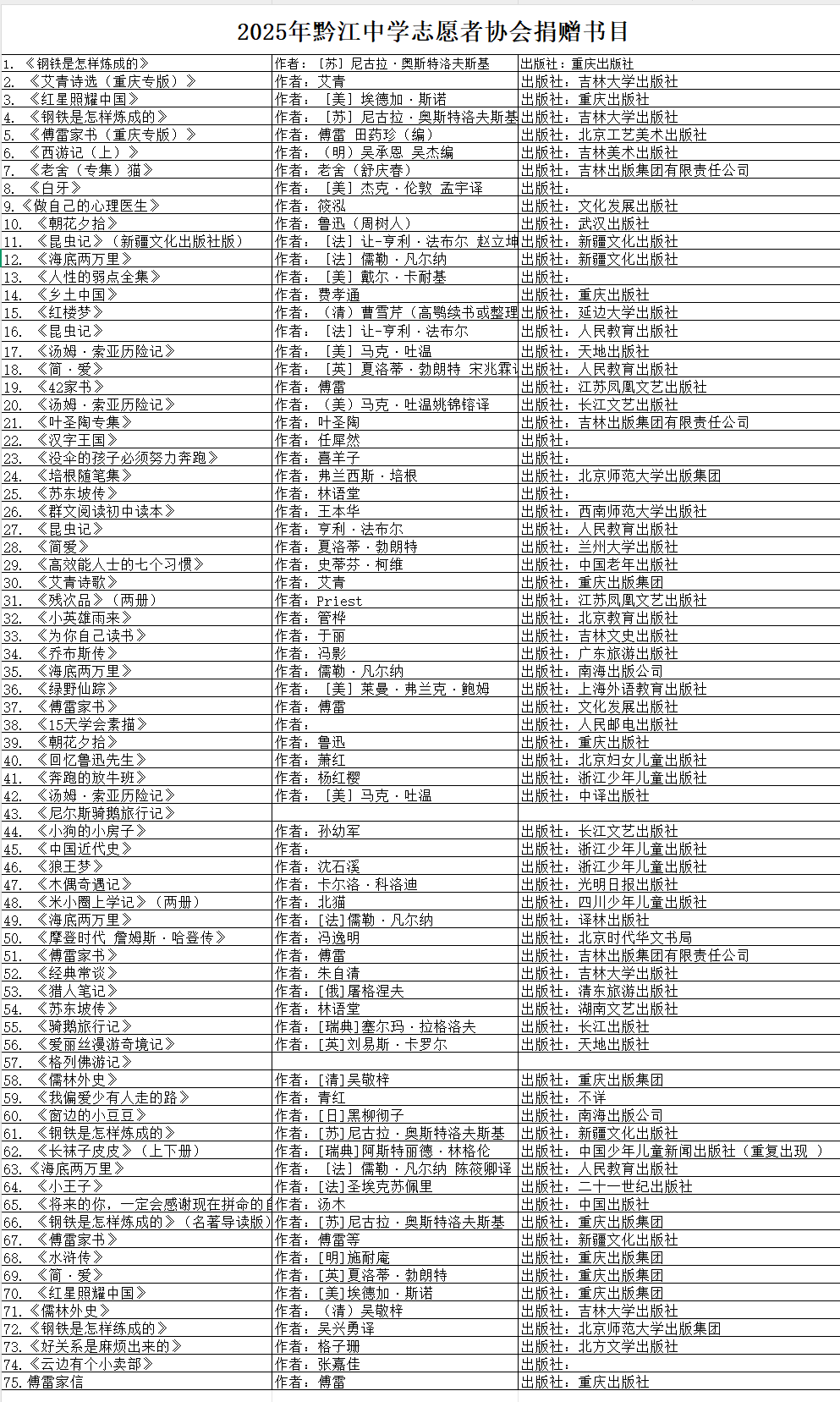 近日,黔江中學志愿者協會發起圖書漂流活動,通過面向社會與校園募集圖書,經分類整理后,將近百冊愛心書籍捐贈至黔江區圖書館,為公共文化服務注入青春力量。